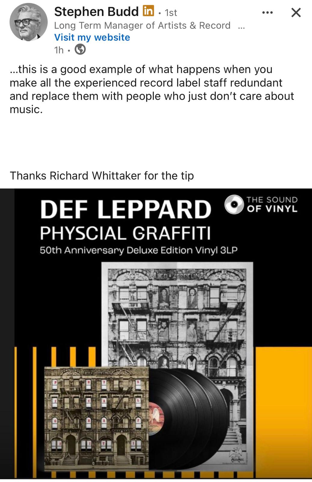 Speaking of the world gradually filling with people who don’t give a shit, Dave Rofe sent me this the other night. I couldn’t quite believe it was real but he assured me it was, Sound of Vinyl have removed it from their website now but it’s worth contemplating at least, perhaps even laughing and/or crying about. Dawn of the Idiots.
