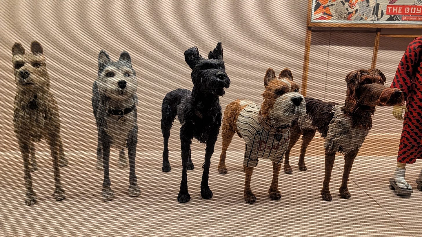 I love stop motion animation so whilst I found everything fascinating my favourite exhibit is obviously going to be a toss up between the above leads from Fantastic Mr. Fox or the fantastic gang at the centre of Isle of Dogs below. You’d be the same, we are children at heart.
