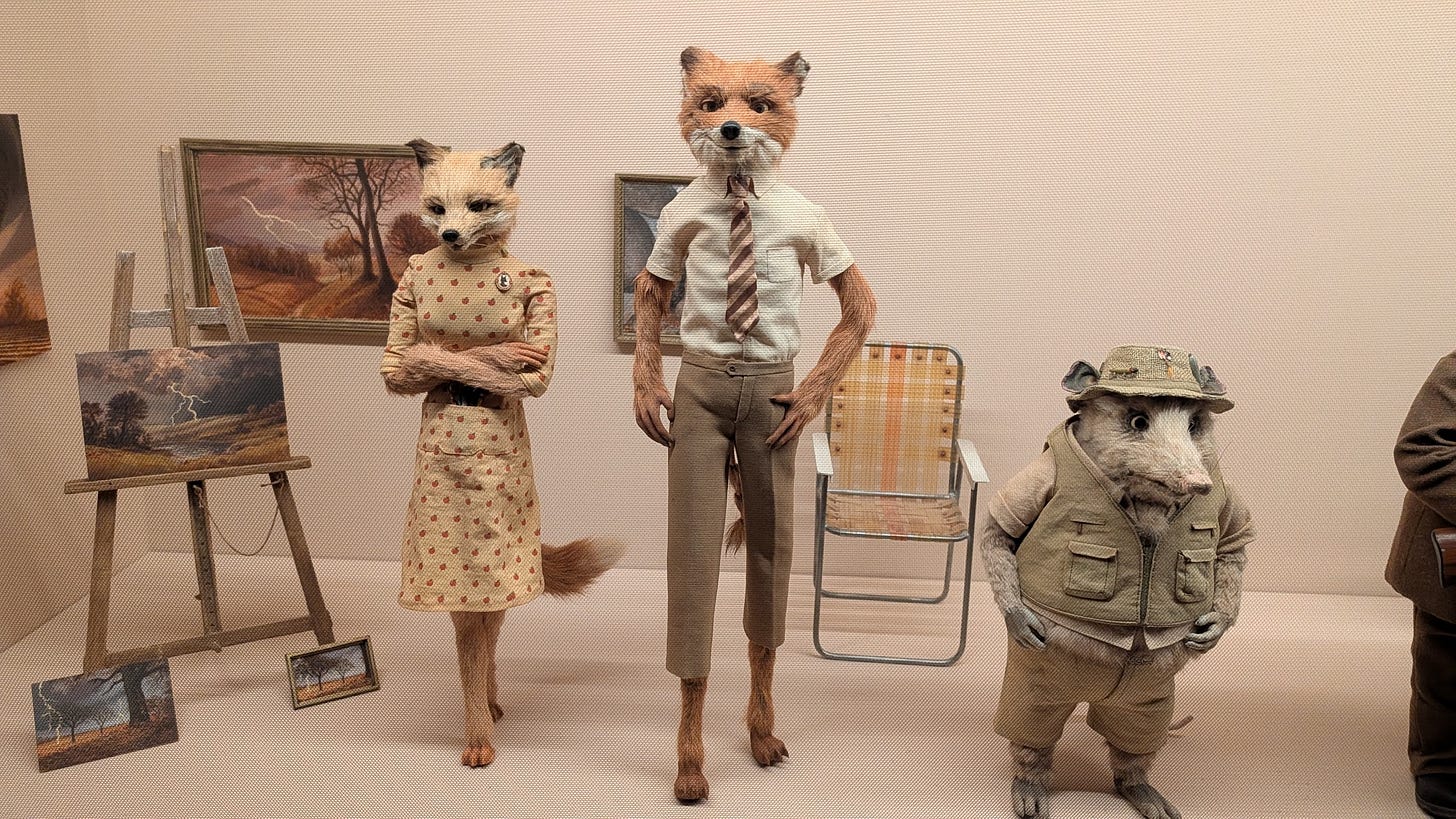 We had a jaunt down to the Design Museum to see the Wes Anderson Archive and it’s well worth a look if you’re a southerner. Or if you’re a northerner who’s willing to travel to stuff, fanciful but possible. I came away thinking that the days of films being made in this way are probably numbered, Wes Anderson really cares about details and the world is steadily filling with people who don’t give a shit. He moved to Great Missenden to be where Roald Dahl had lived for the production of Fantastic Mr. Fox, populating Mr. Fox’s den with the same things lying around and filling the shelves of Dahl’s writing shed. He moved to India for The Darjeeling Limited, he travelled round collecting photos, packaging, items of clothing and cultural ephemera. He had covers designed for all the paperbacks Suzy packs to run away with in Moonrise Kingdom. He commissioned British artist Michael Taylor to actually paint the fictional renaissance painting “Boy with Apple” by the also fictional Johannes Van Hoytl the Younger as a prop in The Grand Budapest Hotel. I could go on all day, every item in every shot is something that’s been thought about, because he cares. People who churn out weekly Youtube content to stay ahead of the algorithm don’t have time to care. People gunning for a seven year Netflix deal don’t care about the same things. AI can’t care at all. Things made with this kind of love and obsession will soon be of the past so be sure to enjoy them while you can.